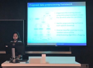 Apresentei o artigo A post-selection algorithm for improving dynamic ensemble selection methods que foi desenvolvido em parceria com Rafael Cruz (ETS, Canadá) e Paulo Roger (aluno de doutorado no CIn-UFPE). Este artigo propõe uma abordagem que seleciona on-the-fly a melhor técnica de Dynamic Selection (DS) por instância de teste. Logo, o artigo tem o objetivo de endereçar a seguinte pergunta de pesquisa: como escolher a melhor técnica de DS por instância de teste? Esta pergunta leva a uma reflexão sobre se precisamos de mais e novas técnicas de DS ou se as técnicas de DS existentes já seriam suficientes para se obter uma boa precisão global do sistema. O artigo conclui que as técnicas que DS são complementares e que o framework proposto é capaz de melhorar a precisão do sistema quando comparada à cada uma das técnicas de DS isoladamente.